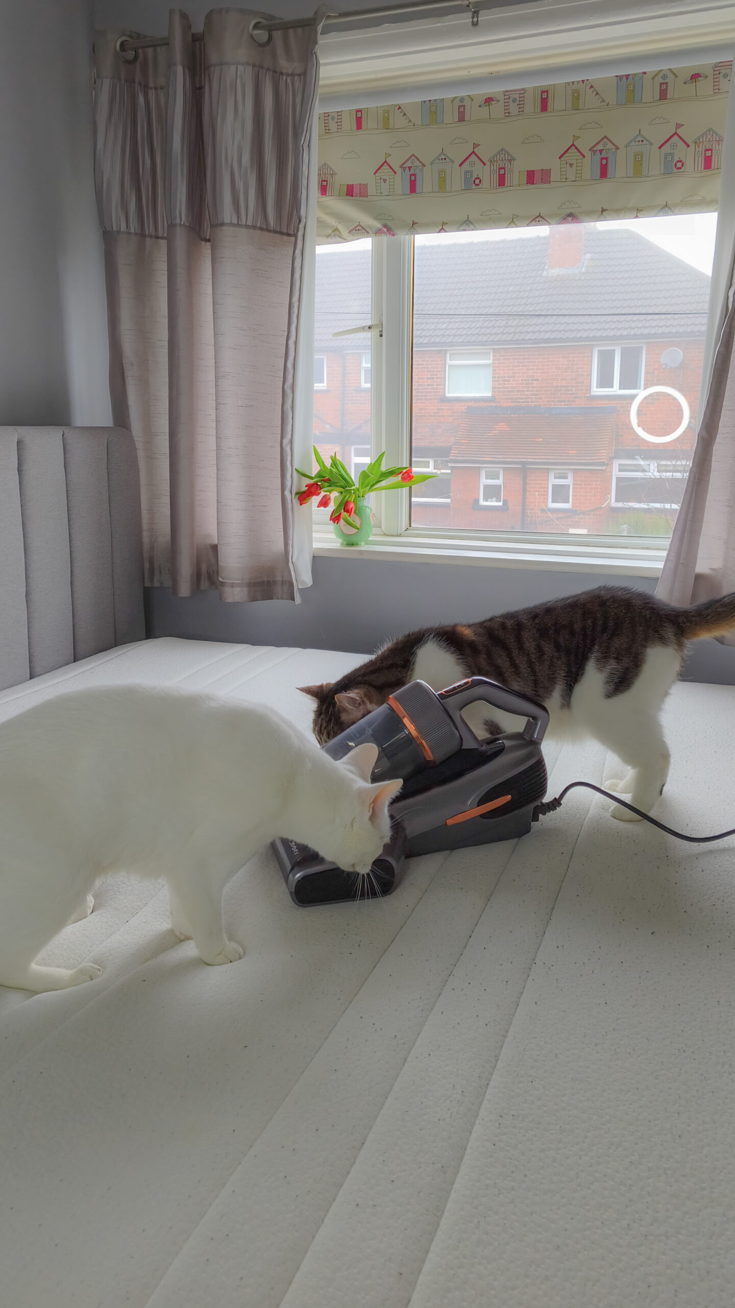 One of my favourite features is the smart dust sensor. It changes colour to show when there’s still dust hiding below the surface and when the area is clean. It’s surprisingly satisfying and gives reassurance that you’re not just guessing – you can actually see when the mattress has been properly cleaned.